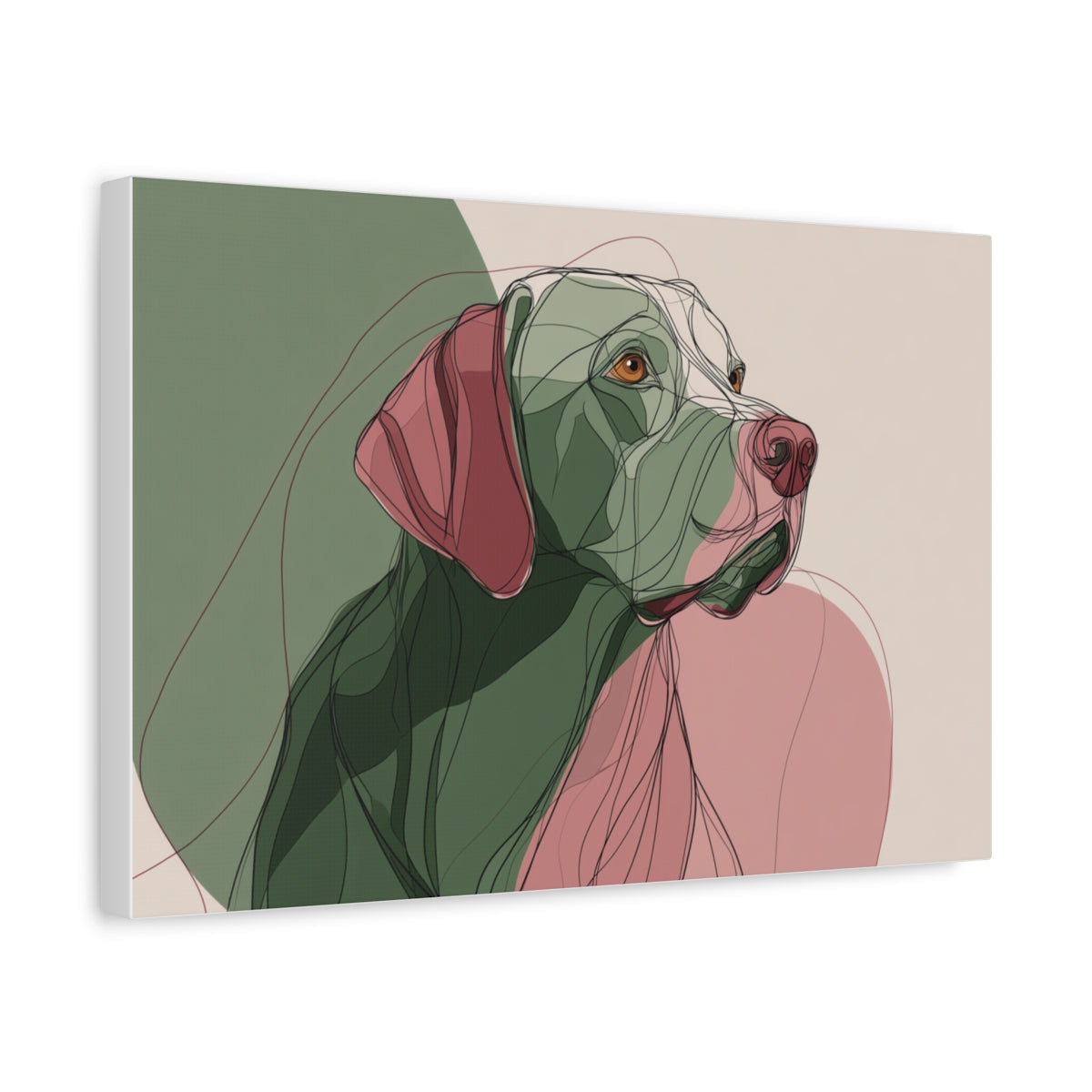 Abstrakcyjny Obraz Labradora – Sztuka Liniowa w Zielono-Różowej Palecie Barw