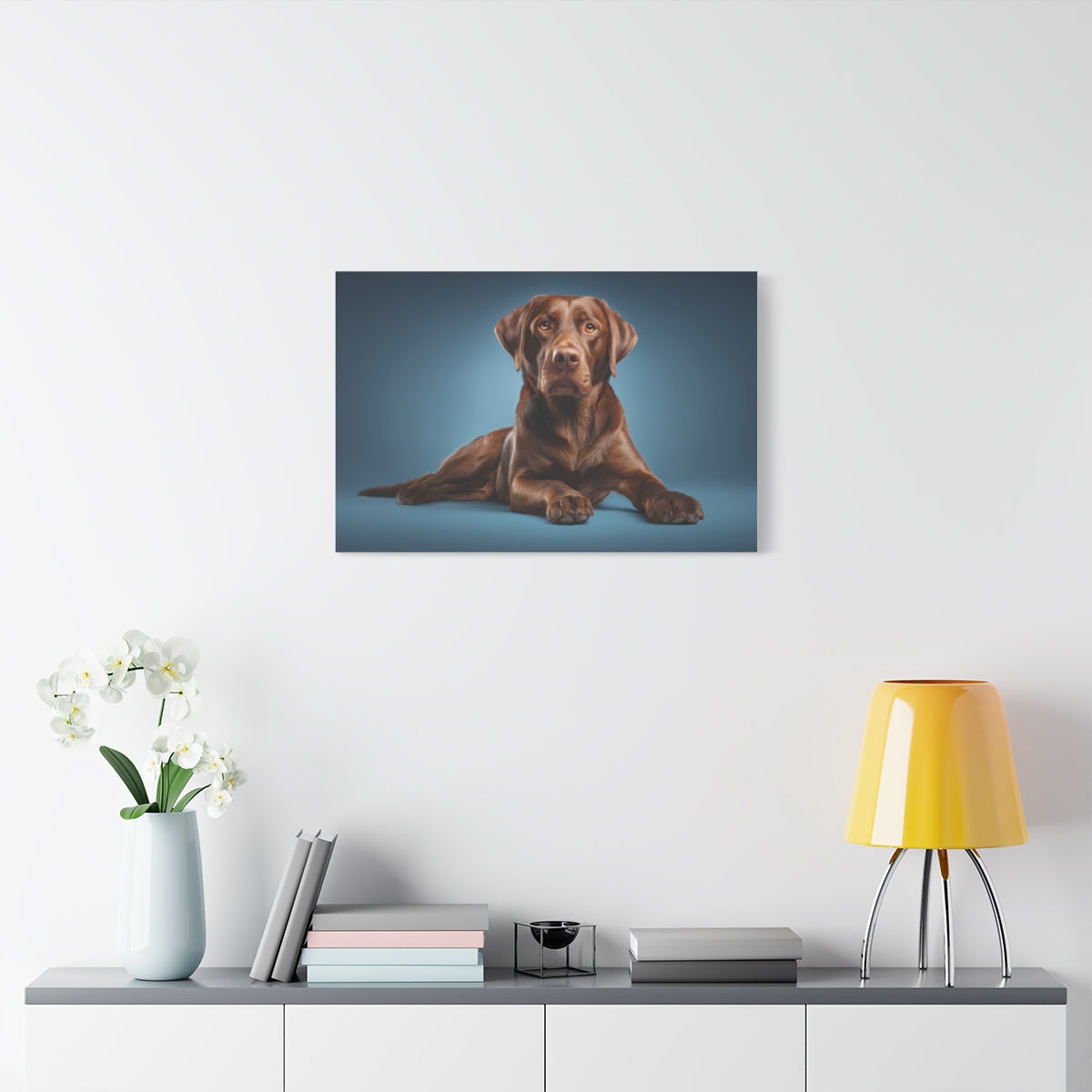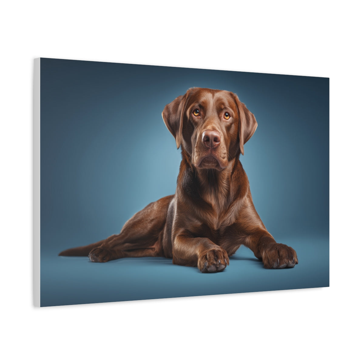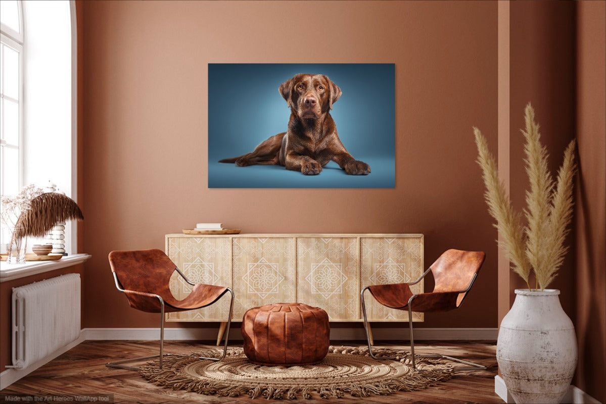 Czekoladowy Labrador na Błękitnym Tle – Dekoracja Ścienna z Psem
