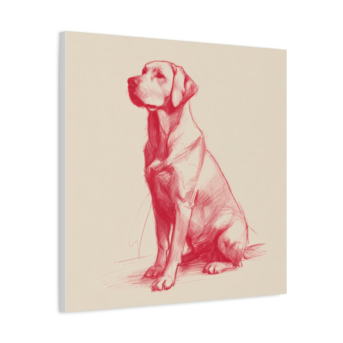 Ten obraz przedstawia szkicowaną ilustrację siedzącego Labradora w stylu minimalistycznym. Czerwona linia na kremowym tle tworzy wyjątkową kompozycję inspirowaną estetyką sketchnote i rysunku odręcznego. Prostota formy w połączeniu z ekspresyjną kreską sprawia, że obraz emanuje elegancją i lekkością, doskonale wpisując się w aktualne trendy artystyczne i wnętrzarskie.