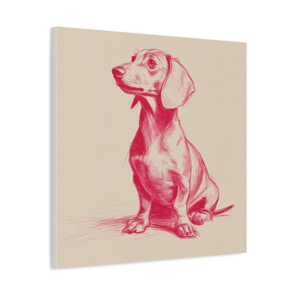 Minimalistyczny Szkic Jamnika – Czerwony Obraz na Beżowym Tle