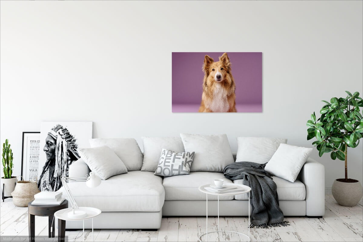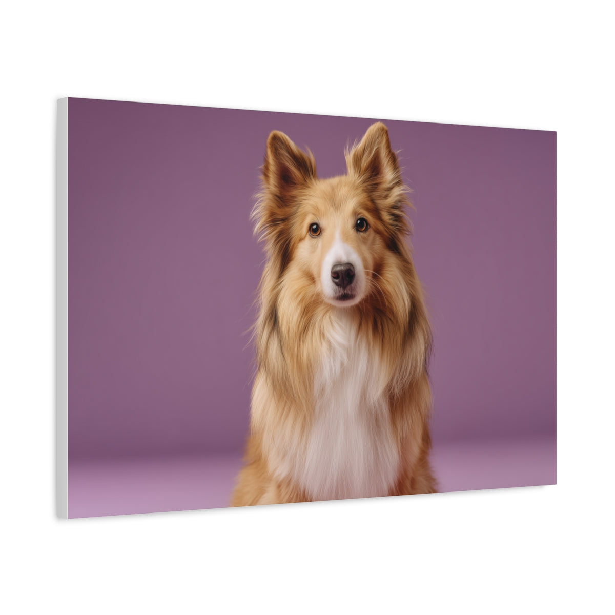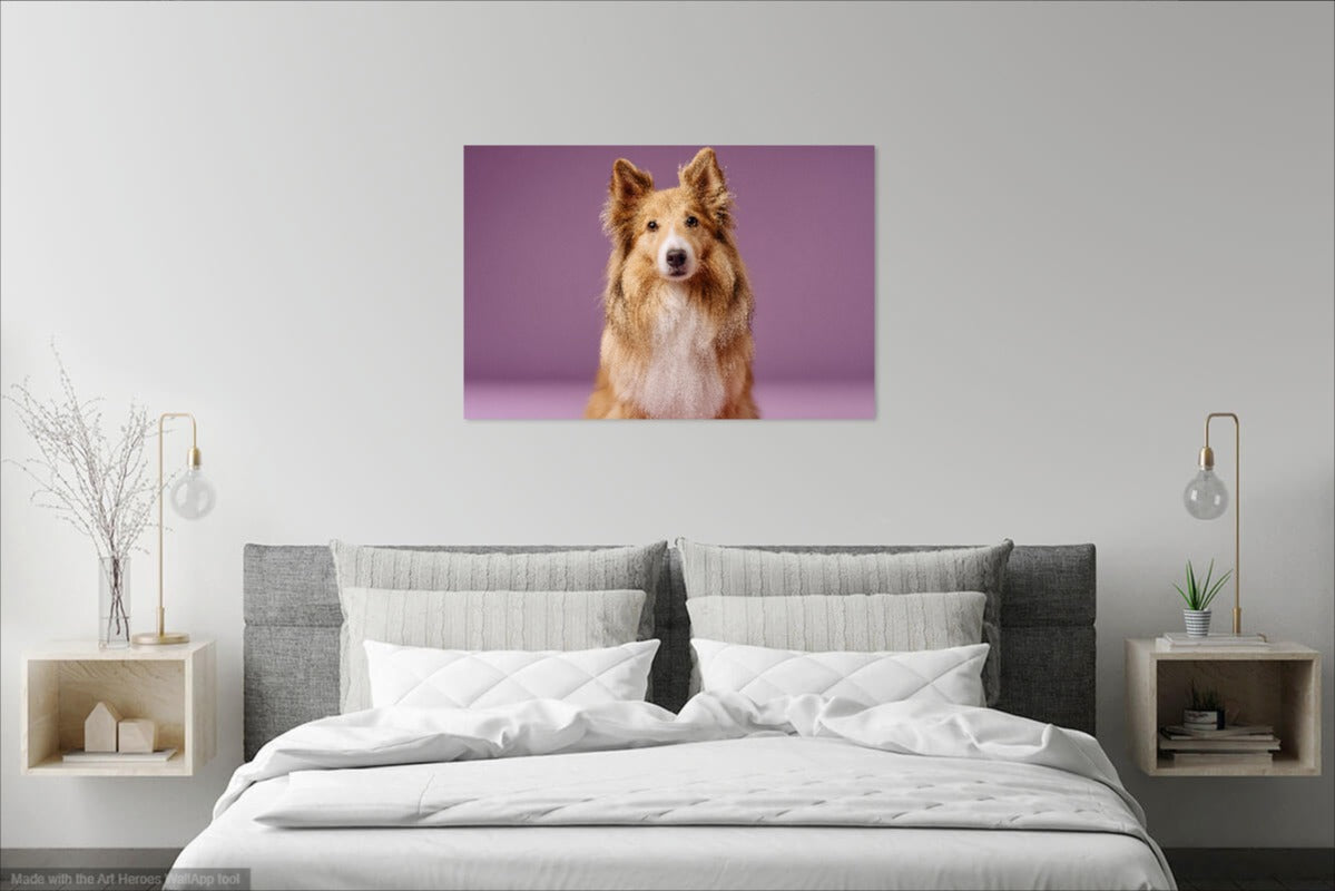 Owczarek Szetlandzki na Fioletowym Tle – Stylowy Obraz do Salonu