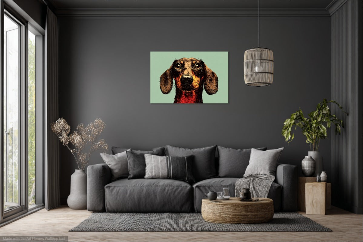 To idealna propozycja dla miłośników psów, stylowych wnętrz i ilustracji z charakterem. Doskonale sprawdzi się jako dekoracja do nowoczesnego salonu, biura, pokoju młodzieżowego czy przestrzeni kreatywnej. Jego graficzny styl i wysoka jakość wykonania sprawiają, że może stanowić centralny punkt w minimalistycznym lub eklektycznym wnętrzu.