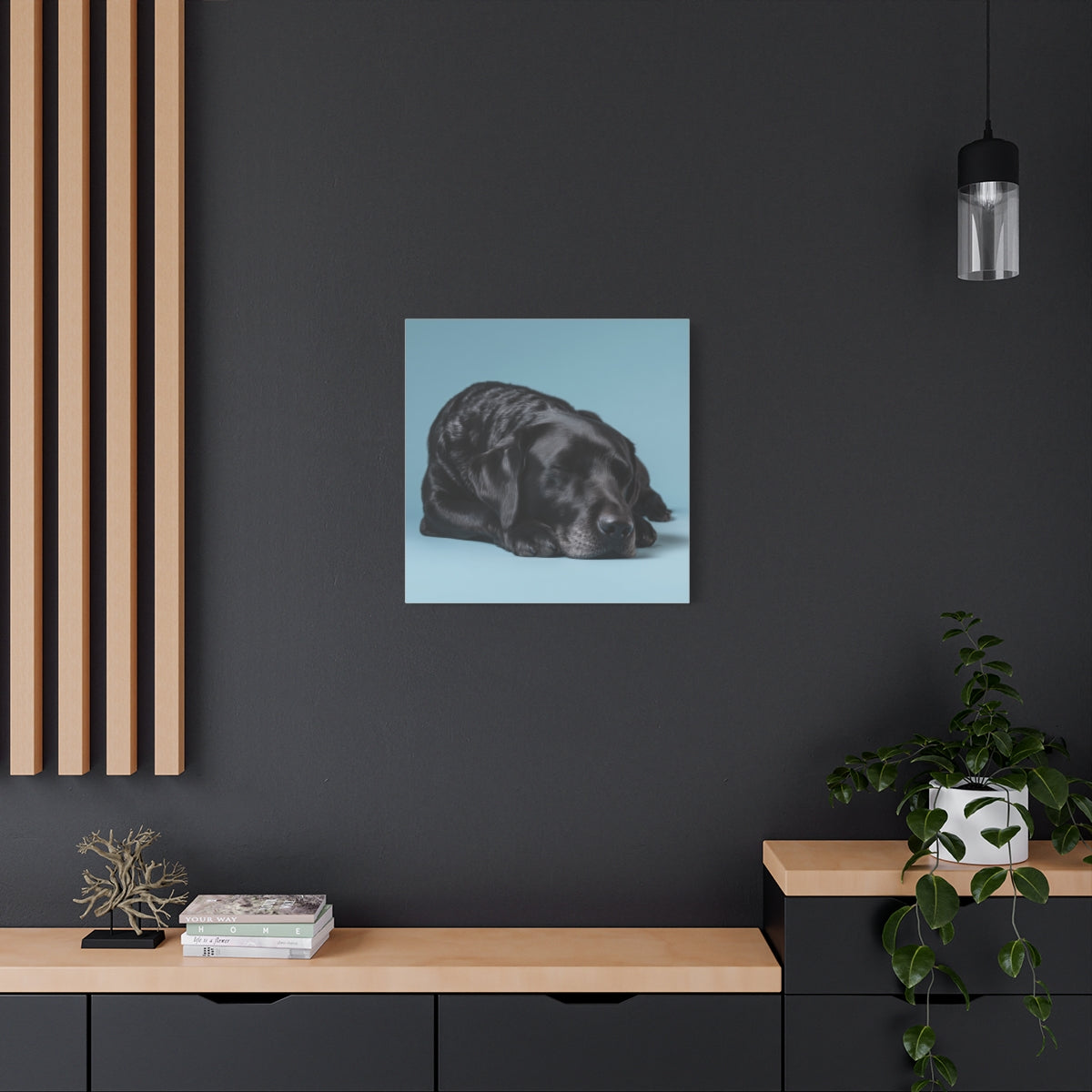 Śpiący Czarny Labrador na Błękitnym Tle – Obraz do Wnętrz